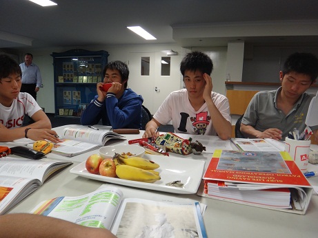 1枚目:座学の合間に。毎回おやつをいただきながらでした。英語に苦戦するも、みんなで取り組めば大丈夫!!教官も丁寧に説明してくれました。2枚目:WATER POLICE見学。立派な船にみんな興味津々でした。3枚目:ホームステイ先の犬、ベラ。ほとんどの家で動物(特に犬)を飼っています。慣れない初めのうちはベラに助けられることもありました。