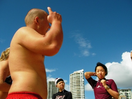 午前中で、すべての講習は終わり、午後は居住できるビルとしては世界一のQ1に上りました。そして昼は、サーファーズで昼食。食いすぎ注意報が発令されています。さて、今日は私が尊敬するノームに会いました。彼との出会いがなければ、ノースクリフとの姉妹クラブは実現できなかったし、ドルフィンとの出会いもなかったと思います。すでに工場は引退していますが、余計忙しくなったよ!と言っていました。明日は、昼に一緒にお茶をする約束をしました。そして、スコットにも再会!夕方、サーフショップに全員を連れて行ってくれましたが、どうも、最近オーストラリアに来ても、サーフブランドに全く興味がなくなりました。年のせいかな?なんといっても、あらフォー(荒井40)なので…。でも、懐かしい人たちにあえて、疲れも吹っ飛びました。もうすでに、ジュニアのメンバーは飛行機に乗ったかな?クラブ始まって依頼、初めてジュニアが参加します。明日は、ブロンズの試験が朝から始まりますが、空港まで迎えに行って、そのあとドルフィンの向上でノームに会い、昼はBBQ。そのあと子どもたちと海に入って、夕方は土蛍を見に山に行く予定です。土曜日はガードをさせてもらい、夕方は将軍レストラン。日曜日はなんと!スコットのクルーザー(3隻あるうちの2隻)で、島に行ってスノーケリングやサーフプログラムをする予定です。