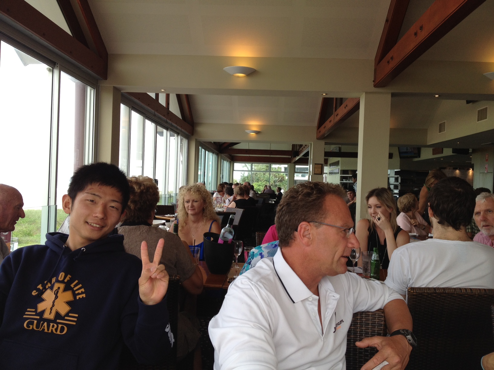 ブロンズの講習が終わり、お昼を食べているところです。