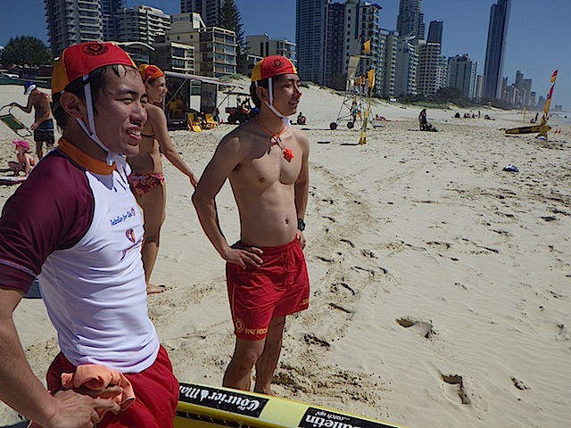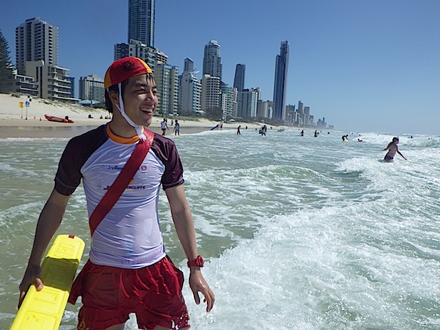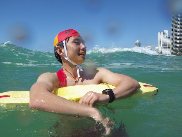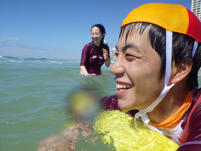 本来はブロンズ合格からすぐ出来ませんが、インストラクターのグレンさんのはからいでガードに入らせていただきました。オーストラリアでは、ガードは3交代制なので、第一部の8:00~11:00の3時間参加しました。1番驚いたことは、遊泳者が自分の泳ぐべき場所をわかって楽しんでいたことです。各クラブの間隔は数百メートルあり、その中で遊泳エリアは20メートルほどしか取られていませんが、遊泳者自身が遊泳エリアを理解し、その中で楽しんでいました。日本のガードでは、絶対にあり得ないことだと思いました。その他では、ガード中にチューブサーフィンや、レスキューと書かれたボディーボードで遊泳エリア内であれば波乗りができるという点です。今回参加したパトロールチームは中高生が多かったため、常に誰かしら海に入っており、浜で待っている自分たちを誘ってくれたので楽しんでガードを行えました。